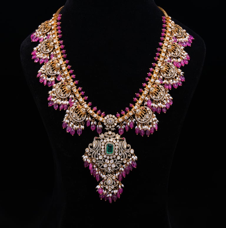 - Rubies: Rich pink-red drops enhancing vibrance and cultural richne