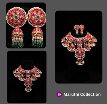 Maruthi Collections brings you the perfect blend of tradition and elegance through exquisitely handcrafted jewelry. Each piece is designed with precision, using premium materials, vibrant gemstones, and timeless artistry. From royal Kundan sets to modern designer pieces, Maruthi Collections celebrates the beauty of Indian craftsmanship with a touch of modern sophistication.